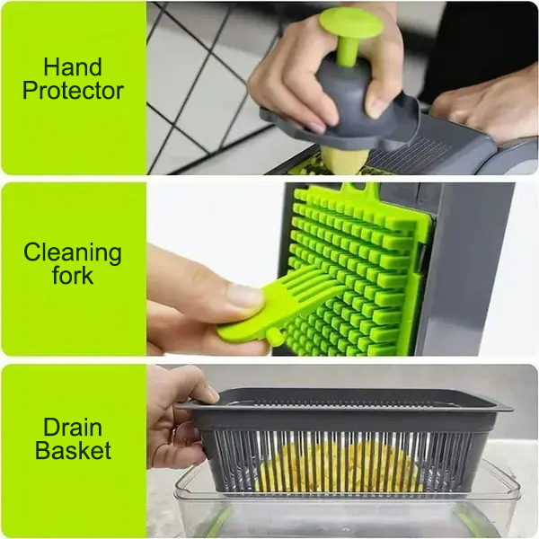 A mellékelt kézvédő távol tartja az ujjait mind a 7 rozsdamentes acél pengétől – így teljes erővel nyomhatja, és minden alkalommal egyenletes, tiszta vágást kap.