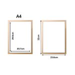 A PP+PVC előlap tiszta és világos képet ad minden nyomatról, torzítás nélkül. Szabványos A4-es nyomatokhoz méretezve (belső: 20,7 x 29,5 cm) – egyenesen az otthoni nyomtatóból, egyenesen a keretbe.