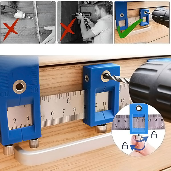 🛠️ Tökéletes fúrás, minden alkalommal! Könnyítse meg a barkácsolást az állítható központosító sablonunkkal. Fúrjon precízen lyukakat fából készült bútorokon és más eszközökön, gyors és pontos igazítással bármilyen projekthez.