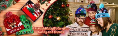 XBEANIE egy Karácsonyi szarvas, hóemberek mintájával és LED fényekkel készült, amelyek megfelelnek az ünnepi igényeknek és a gyönyörű divatnak.