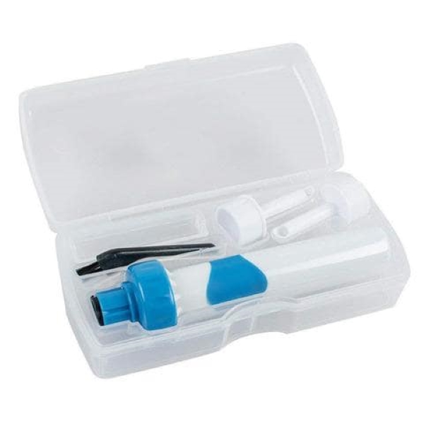 Hogyan kell használni: Nyomja meg a bekapcsoló gombot, óvatosan helyezze a hegyét a hallójáratba, és hagyja, hogy az EARSIO vibráljon és kiszívja a fülzsírt.