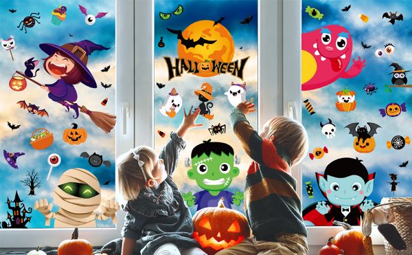A csomag tartalma 30 ablakmatrica amelyek rajzfilmeket, boszorkányokat és csontvázakat ábrázolnak— tökéletesek hátborzongató, aranyos vagy klasszikusan ijesztő dekorációhoz.