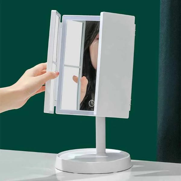 📐 Méretek: zárva 24 x 18 x 6 cm – nyitva 33,5 x 38,8 x 22 cm – 3 fényerőszint – 3 fényszínmód – 2x és 3x nagyítás