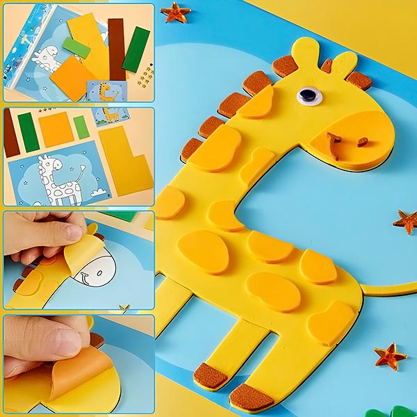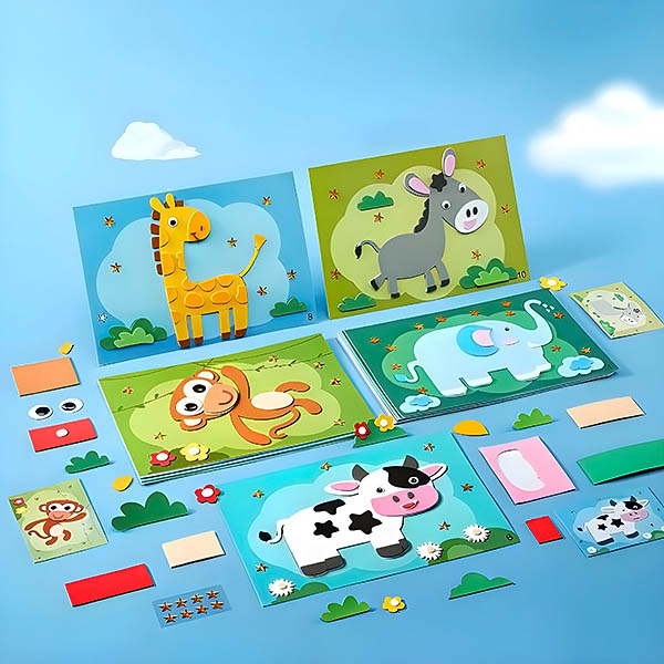 Nincs szükség ragasztóra vagy ollóra, így nem kell aggódnia, hogy gyermeke megsérül. Csak húzza le a ragasztót, és ragassza fel a kartonra rétegenként a felszólító képnek megfelelően.