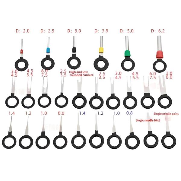 🔧 Ez a szerszámkészlet időt és energiát takarít meg, mivel könnyen eltávolítja a vezetékeket az autók, motorkerékpárok és elektronikai eszközök csatlakozóiból anélkül, hogy a csapok vagy a vezetékek megsérülnének.