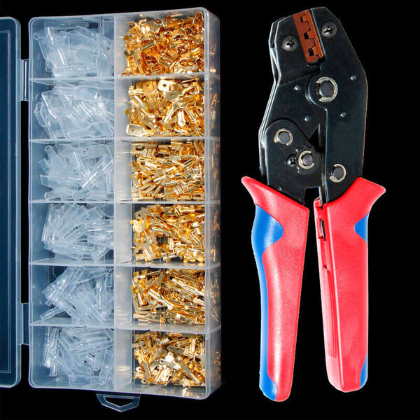 A készlet három méretben (2,8, 4,8, 6,3 mm) tartalmaz férfi és női csatlakozókat.