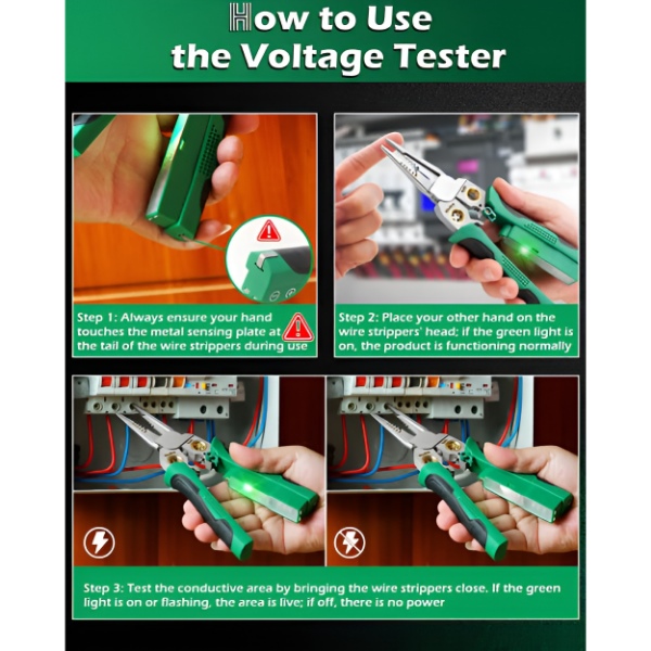 ⚡ Beépített feszültségvizsgáló – azonnal ellenőrizheti az áramköröket a szerszám letétele nélkül