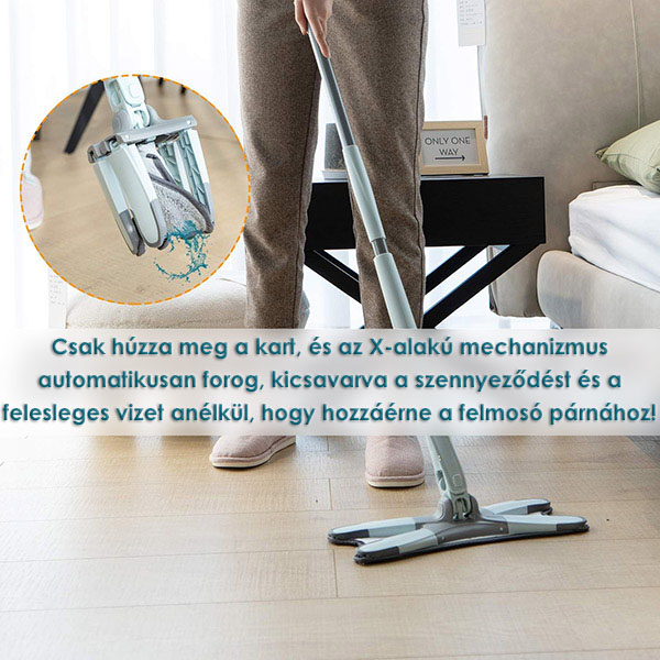 Felejtse el a csuromvizes felmosókat és a koszos kezeket! Fejlett önkicsavaró rendszerünk utánozza a kézi csavarás mozdulatát, kétszer annyi vizet távolít el, mint a hagyományos felmosók, így gyorsabb és könnyebb a takarítás!
