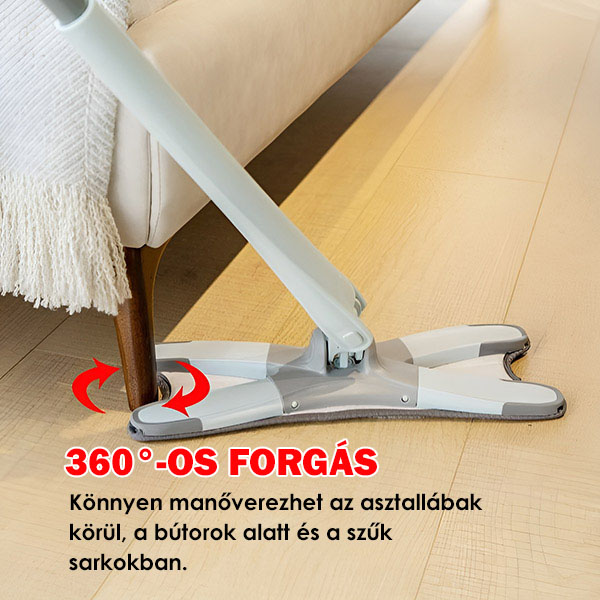 A felmosás régen rendetlen és időigényes volt—de már nem. Ez a felmosó úgy lett tervezve, hogy a takarítási időt felére csökkentse! Egyetlen mozdulattal eltünteti a port, szennyeződéseket és a kiömlött folyadékokat.